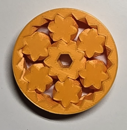 Spinner cu decupaje decorative în formă de flori, realizat prin imprimare 3D.